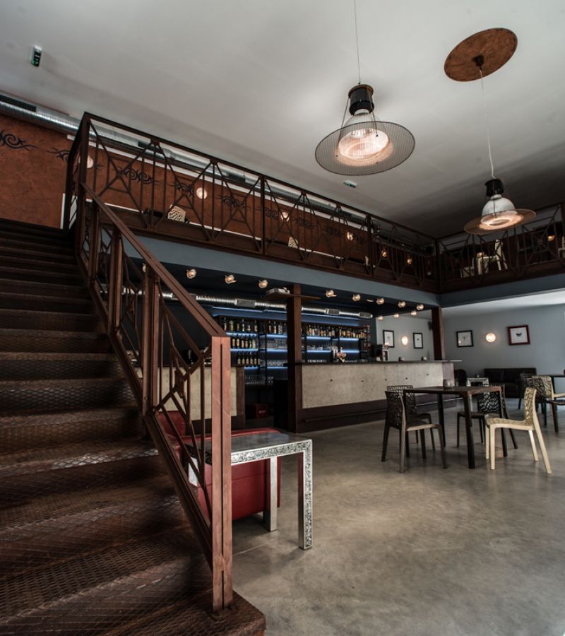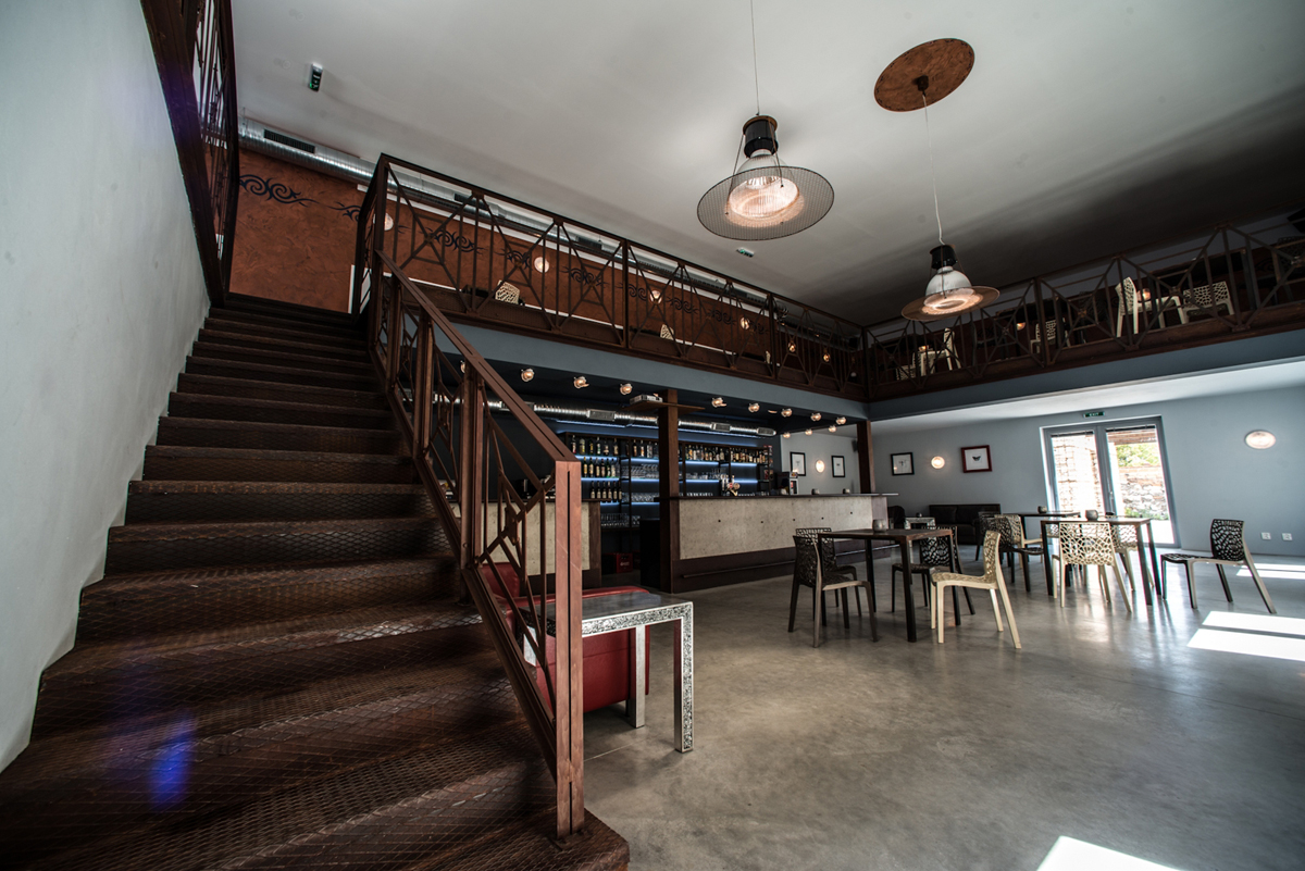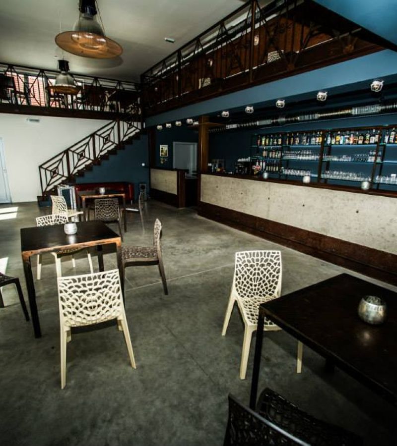 Dominantní otevřený prostor s vysokým stropem, betonovou podlahou a moderním barem. Ideální pro večírky, svatební party, taneční akce nebo firemní večírky.