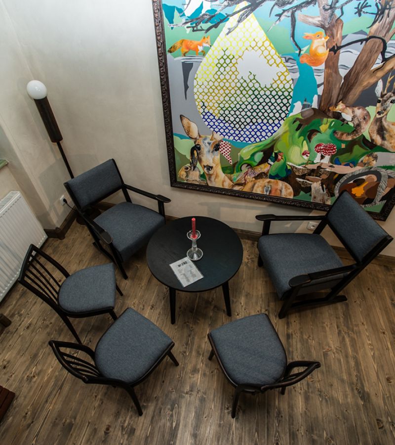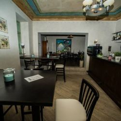 Prostor působí útulně a noblesně – vhodný i pro denní program.